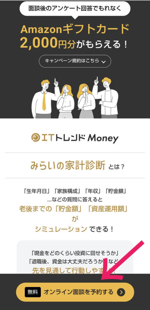 ①下の方の「 無料 オンライン面談を予約する」をクリック